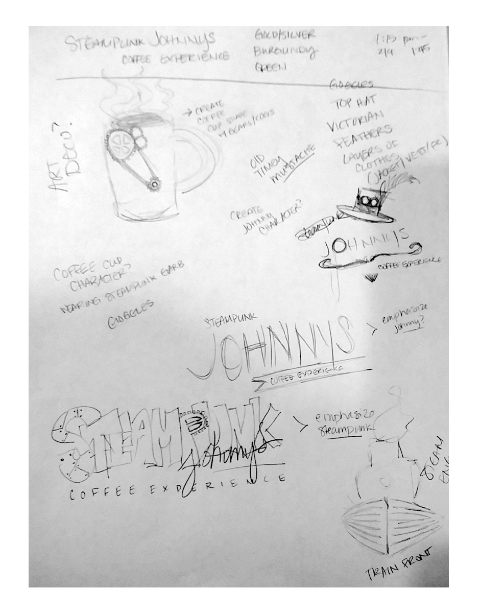 My client was opening a coffee shop in Ventura, California and wanted a steampunk theme for his business. He envisioned turn of the century inspired lettering accompanied with dark, rich colors. We came up with a logo that portrays just that, with a graphic that lends itself to the steampunk style, while also encompassing a nice, warm cup of coffee. Scroll down to see some of my process work that led me to this design.